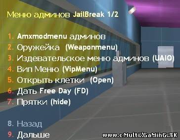 Простое меню для администрирования сервером JailBreak. Меню вызывается клавишей F5