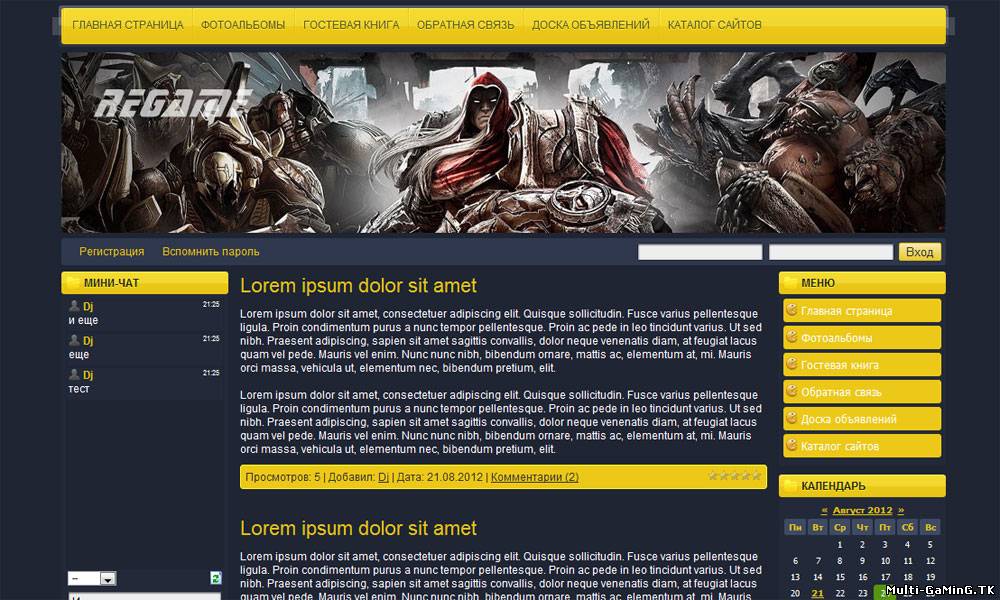 Шаблон ReGame для uCoz от Uc-Portaller.Ru. С каждым разом наши работы становятся все лучше и лучше, и этот шаблон не исключение. ReGame предназначен для игровых сайтов или портало, официальных пабликов клана. Переделать шаблон под другую тематику можно одной лишь заменой шапки, которая почти полностью задает тематику сайта в этом шаблоне.
